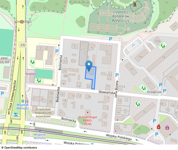 Nieruchomość stanowi działkę gruntu nr 16/2 o powierzchni 0,0907 ha, obręb ewidencyjny : 0489 miasta Bydgoszcz, Nieruchomość jest położona w województwie kujawsko-pomorskim , miasto Bydgoszcz, ul.Słowiańska 15 A. Działka obejmuje obszar płaski, o względnie regularnym kształcie. Teren zabudowany jest budynkiem mieszkalnym jednorodzinnym w zabudowie wolnostojącej. Działka częściowo utwardzona kostką polbruk.
