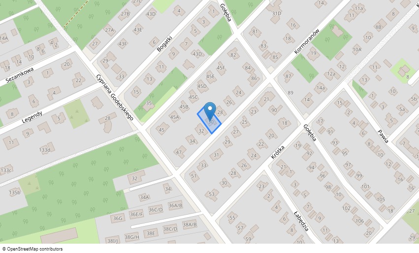 ul. Kormoranów. Z mapy geodezyjnej wynika, że przyłącza są wykonane na działce.