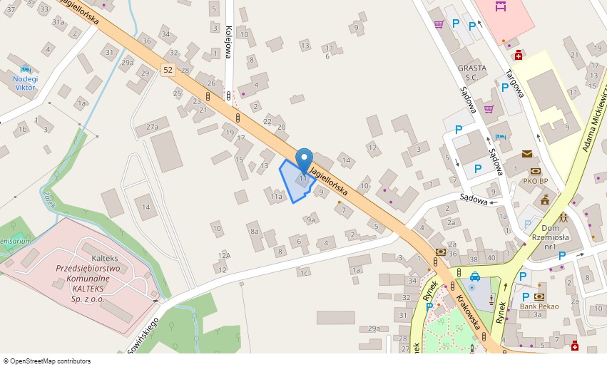Nieruchomość gruntowa ma powierzchnię 0,0938 ha. Teren nieruchomości jest równy, ze spadkiem w kierunku wschodnim. Nieruchomość jest uzbrojona w sieć energetyczną, wodociągową, kanalizacyjną oraz gazową. Od strony północnej nieruchomość przylega do drogi krajowej nr 52 - ul. Jagiellońskiej o nawierzchni asfaltowej, z której ma urządzony bezpośredni zjazd, użytkowany również przez właściciela sąsiedniej nieruchomości na podstawie ustanowionej służebności.