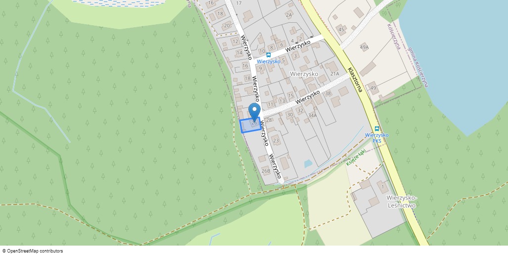 - ułamkowej części nieruchomości, której właścicielem jest ******** położonej przy Wierzysko 26, 83-400 Kościerzyna, dla której Sąd Rejonowy w Kościerzynie IV Wydział Ksiąg Wieczystych (adres: ul. ul. Zmartwychwstańców 1, Kościerzyna, 83-400 Kościerzyna) prowadzi księgę wieczystą o numerze GD1E/xxxxxxxx/2.