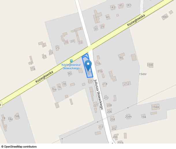 Przedmiotem licytacji jest nieruchomość składająca się z następujących działek gruntu: - działka gruntu o nr ewid. 1832/2 o powierzchni 0.3576 ha. Działka wg. wypisu z rejestru gruntów nieruchomość stanowi tereny mieszkaniowe - klasa B. Kształt działki nieregularny o szerokości ok. 15 m i długości ok. 15 m. Obszar działki ogrodzony. Teren posesji nie utwardzony. W części niezabudowanej teren pokryty zielenią zewnętrzną nieurządzoną (rośliny trawiaste, zakrzaczenia i zachwaszczenia). Nieruchomość jest uzbrojona w sieć elektroenergetyczną, wodociągową oraz kanalizację - własny zbiornik bezodpływowy. Zabudowę nieruchomości stanowi: - budynek mieszkalny jednorodzinny I-kontygnacyjny, częściowo podpiwniczony z nieużytkowym poddaszem. Budynek wybudowany w latach 50 XX w. Pow. użytkowa budynku wynosi 80,42 m.kw, pow. zabudowy wynosi 102, 00 m.kw. Konstrukcja budynku murowana. Program busynku: trzy pokoje w tym dwa przejściowe, kuchnia, łazienka z WC, przedpokój oraz wiatrołap. Instalacje wewnętrzne budynku: energia elektryczna, kanalizacja, do szamba, c.o (piec węglowy). Stan techniczny i funkcjonalny budynku niski; - budynek gospodarczy I-kontygnacyjny. Budynek wybudowany w latach 70 XX w. Pow. użytkowa budynku wynosi 13,71 m.kw, pow. zabudowy wynosi 14,00 m.kw. Konstrukcja budynku murowana. Instalacja wewnętrzna: energia elektryczna. Stan techniczny i funkcjonalny budynku niski; Działka posiada bezpośredni dostęp do drogi publicznej o nawierzchni asfaltowej; - działka gruntu o nr ewid. 1832/1 o powierzchni 0.0113 ha. Działka wg. wypisu z rejestru gruntów nieruchomość stanowi grunty orne - klasa RVI. Obszar działki stanowi jedna funkcjonalną całość z działką o nr. ewid. 1832/2. Kształt działki nieregularny. Przez obszar działki przebiega sieć elektroenergetyczna oraz telekomunikacyjna. Działka narożna położona na styku ulicy Słowackiego i Koziegłowskiej.