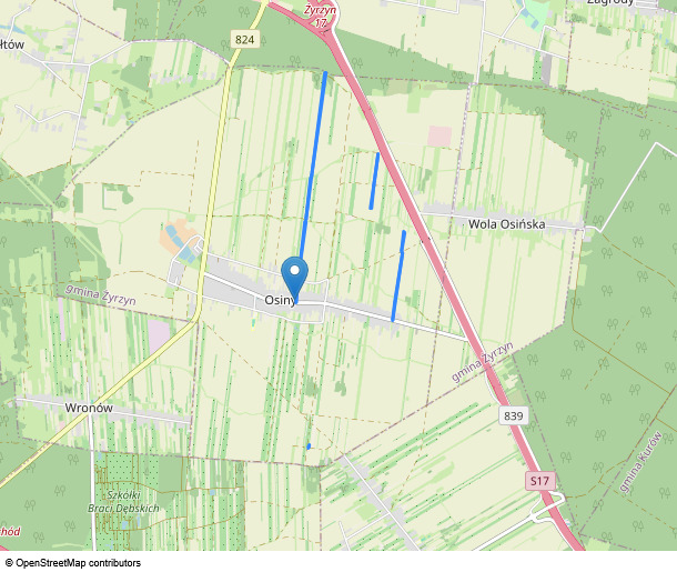 - nieruchomości, której właścicielem jest ********* położonej przy Centralna 83,Osiny, 24-103 Żyrzyn, dla której Sąd Rejonowy w Puławach V Wydział Ksiąg Wieczystych (adres: ul. Lubelska 7, Puławy, 24-100 Puławy) prowadzi księgę wieczystą o numerze LU1P/xxxxxxxx/3.
