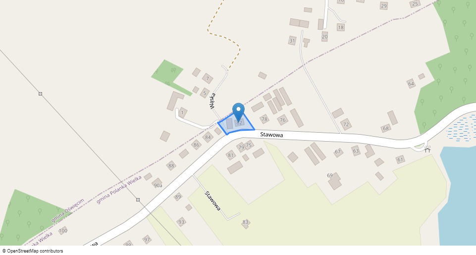 nieruchomości gruntowej objętej Księgą Wieczystą nr KR1E/xxxxxxxx/8, złożona z działki nr 2181/10 o pow. 0,1114 ha zabudowana budynkiem mieszkalnym przy ul. Stawowej 82 oraz budynkami gospodarczymi. Nieruchomość położona w miejscowości Polanka Wielka 32-607, gmina Polanka Wielka, powiat oświęcimski, województwo małopolskie. Budynek mieszkalny - pow. netto [m2]: 317,24; pow. użytkowa [m2]: 260,68.