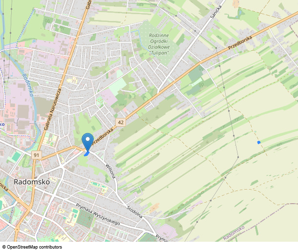 - nieruchomości położonej przy Wilsona 2, 97-500 Radomsko, dla której Sąd Rejonowy w Radomsku (adres: ul. Tysiąclecia 3, Radomsko, 97-500 Radomsko) prowadzi księgę wieczystą o numerze PT1R/xxxxxxxx/2 .