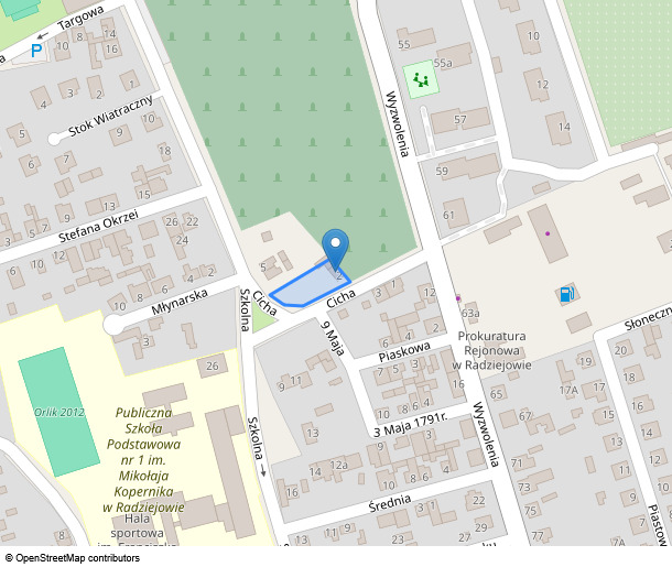 - ułamkowej części nieruchomości położonej przy Cicha 2, 88-200 Radziejów, dla której Sąd Rejonowy w Radziejowie IV Wydział Ksiąg Wieczystych (adres: ul. Brzeska 20, Radziejów, 88-200 Radziejów) prowadzi księgę wieczystą o numerze WL1R/xxxxxxxx/3.