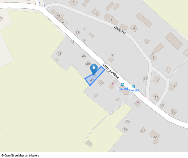 - ułamkowej części nieruchomości położonej przy ul. Starogardzka 49, 83-200 Rywałd, dla której Sąd Rejonowy w Starogardzie Gdańskim V Wydział Ksiąg Wieczystych (adres: ul. Kościuszki 30, Starogard Gdański, 83-200 Starogard Gdański) prowadzi księgę wieczystą o numerze GD1A/xxxxxxxx/0.