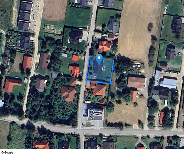 Działka 1337/12 o pow. 0,0974 ha, użytek gruntowy B - tereny mieszkaniowe. Kształt zbliżony do kwadratu, teren płaski, przy budynku nieznaczne podniesienie terenu. Nieruchomość położona w sąsiedztwie zabudowy mieszkaniowej, przy ogólnodostępnej drodze asfaltowej. Działka zabudowana budynkiem mieszkalnym, ogrodzona (siatka, sztachety, brama stalowa), teren w dużej części zielony z niedużą ilością nasadzeń ozdobnych, utwardzenie przy budynku (taras betonowy z tyłu, opaska z kostki brukowej oraz dojście od frontu). W narożu działki znajduje się piwnica betonowa obsypana ziemią. Do budynku mieszkalnego podpięte są przyłącza wodociągowe (kanalizacja sanitarna i elektroenergetyczna). Budynek mieszkalny konstrukcji lekkiej stalowej z ociepleniem wewnątrz konstrukcji, dach stalowy kryty gontem bitumicznym, elewacja - tynk dekoracyjny. Budynek jednokondygnacyjny, bez podpiwniczenia, którego budowa zakończyła się w 2007 roku. Powierzchnia zabudowy budynku mieszkalnego ujawniona w ewidencji budynków wynosi 150m[2]. Okna i parapety z tworzywa sztucznego, zamontowane rolety, drzwi wewnętrzne pilśniowe, ściany wyłożone płytami gips-karton z gładziami gipsowymi. W budynku znajdują się: salon z aneksem kuchennym, pomieszczenie gospodarcze, cztery pokoje w tym jedne wydzielony z części salonu, ganek, korytarz, łazienka, toaleta. Na podłodze płytki ceramiczne, panele, wylewka betonowa - w zależności od funkcji pomieszczenia. Na ścianach łazienki, toalety i częściach kuchennych płytki ceramiczne.
