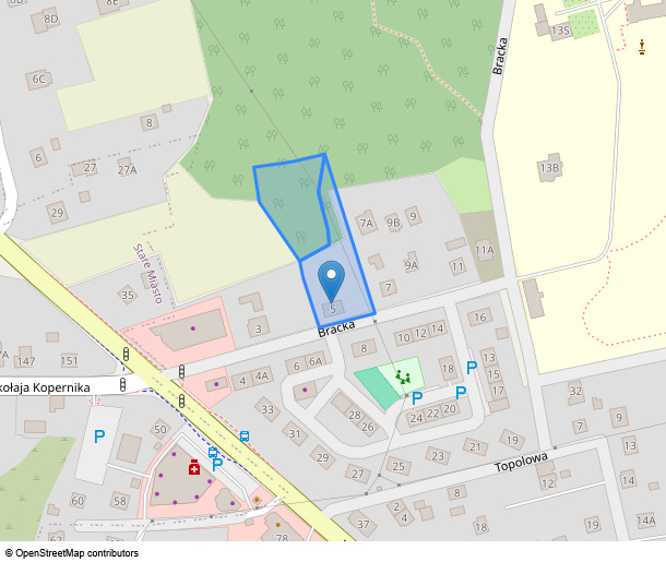 Działka nr 7 stanowi gospodarczą całość z zabudowaną działką nr 6. Dostęp od ul. Brackiej przez działkę nr 6.