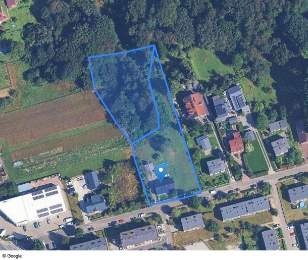 Działka nr 7 (o pow. 2600 m2) jest położona w II linii zabudowy od. ul. Brackiej. Działka nie jest zabudowana, ma nieregularny kształt, teren nieutwardzony, zadrzewiony, nieuzbrojony.