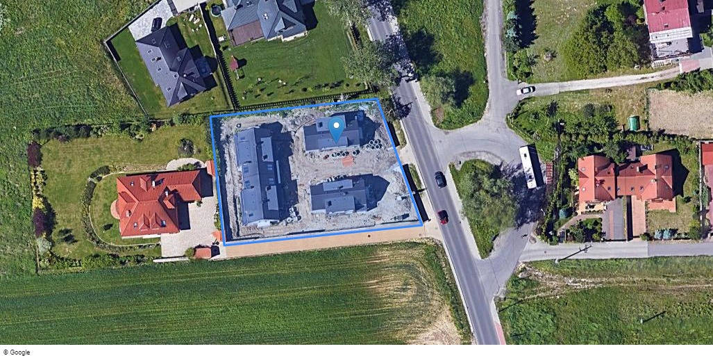 Dwa budynki mieszkalne jednorodzinne w zabudowie bliźniaczej. W każdym budynku zaprojektowano dwa lokale mieszkalne z wejściem na parterze – jeden lokal obejmuje parter a drugi lokal kondygnację poddasza. Wewnątrz każdego budynku znajduje się klatka schodowa obsługująca kondygnację poddasza. W dniu oględzin budynki w stanie deweloperskim – do indywidualnego wykończenia. W każdym budynku zaprojektowano dwa lokale mieszkalne z wejściem na parterze – jeden lokal obejmuje parter a drugi lokal kondygnację poddasza. Wewnątrz każdego budynku znajduje się klatka schodowa obsługująca kondygnację poddasza. W poziomie parteru (lokal mieszkalny A) zaprojektowano następujące pomieszczenia: -salon, kuchnia, jadalnia, hol, przedsionek, sypialnia/pokój, łazienka. W poziomie poddasza (lokal mieszkalny B) zaprojektowano następujące pomieszczenia: kuchnia, jadalnia, korytarz, hol, sypialnia/pokój, łazienka, salon, korytarz (wejściowy na parterze). [4 mieszkania o pow. 67,78 m2, 78,30 m2, 67,43 m2, 77,95 m2] Teren działki zupełnie niezagospodarowany, w tym także brak odwodnienia wokół budynków mieszkalnych. Wraz z nabyciem nieruchomości w trybie uproszczonym sprzedaży podlega dokumentacja budowlana konieczna do ukończenia budowy.