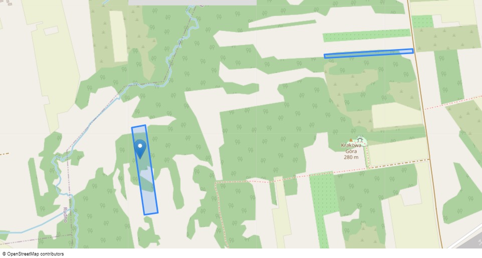 Działka numer 261 o powierzchni 1,1200 ha składa się z użytków gruntowych grunty zadrzewione i zakrzewione na użytkach rolnych klasy IVa, IVb i V oraz grunty orne klasy IVa. Działka ma kształt regularny, zbliżony do prostokąta o szerokości około 41,60 m i długości około 263,50 m. Dostępność komunikacyjna słaba, drogami gruntowymi. Teren działki nieużytkowany rolniczo, zakrzaczony i zadrzewiony samosiewkami drzew pospolitych. Drzewa te nie przedstawiają wartości użytkowej.