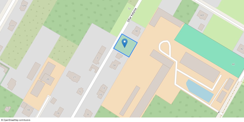 Nieruchomość gruntowa ma kształt regularny, kwadratowy, jest nieuzbrojona, ogrodzona ogrodzeniem z siatki stalowej. Bezpośrednie usytuowanie przy ulicy Ofiar Katynia (droga wewnętrzna, dwukierunkowa, nieutwardzona).