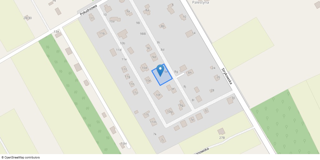 - nieruchomości, której właścicielem jest ****** położonej przy Palestyna 9E, 95-002 Glinnik-Palestyna, dla której Sąd Rejonowy w Zgierzu V Wydział Ksiąg Wieczystych (adres: ul. Sokołowska 6, Zgierz, 95-100 Zgierz) prowadzi księgę wieczystą o numerze LD1G/xxxxxxxx/7.