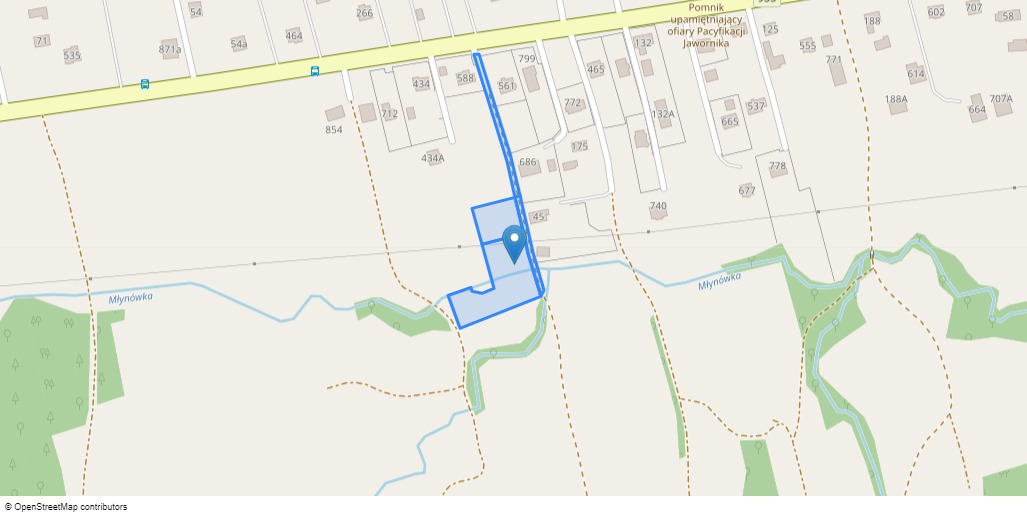 - nieruchomości, której właścicielem jest ********** położonej przy 0,Jawornik, 32-400 Myślenice, dla której SĄD REJONOWY MYŚLENICE IV WYDZIAŁ KSIĄG WIECZYSTYCH (adres: ul. , MYŚLENICE, 32-400 MYŚLENICE) prowadzi księgę wieczystą o numerze KR1Y/xxxxxxxx/0.
