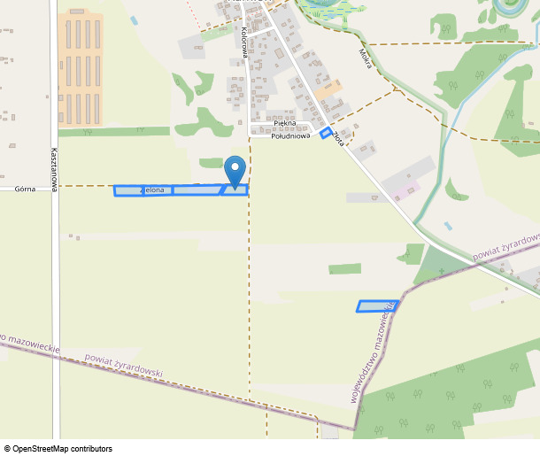 niezabudowanej nieruchomości gruntowej, dla której Sąd Rejonowy w Żyrardowie V Wydział Ksiąg Wieczystych prowadzi księgę wieczystą o numerze PL1Z/xxxxxxxx/6. Wyżej wymieniona nieruchomość jest położona w miejscowości Kamion, w gminie Puszcza Mariańska, w powiecie żyrardowskim, w województwie mazowieckim. Nieruchomość o całkowitej powierzchni 18 376 metrów kwadratowych składa się z: