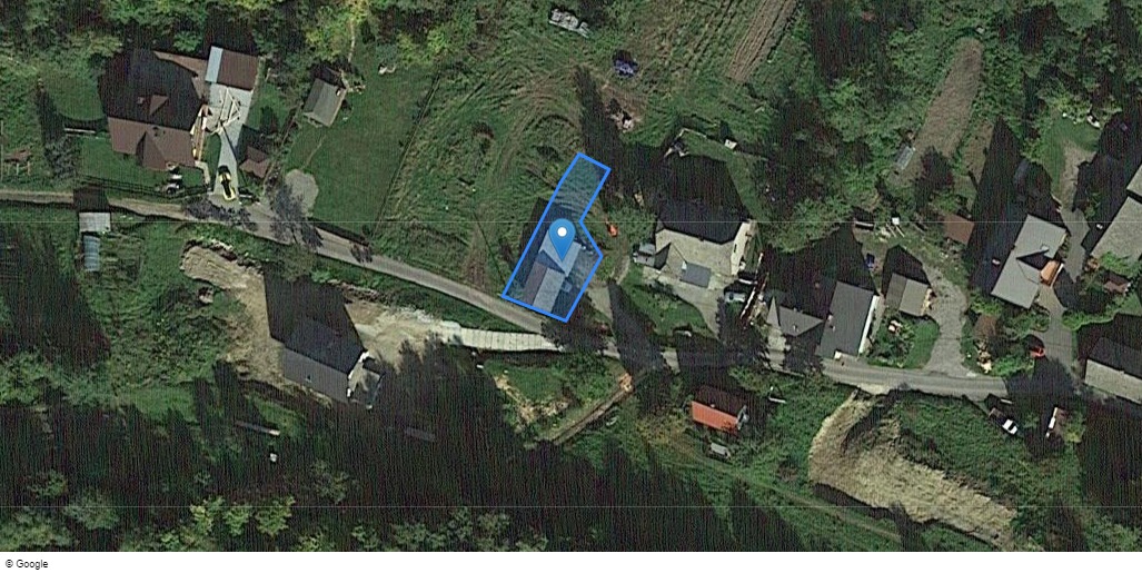 Nieruchomość gruntowa ma kształt nieregularny o wymiarach ok. 12 x 27 m. Teren nieruchomości jest równy, z dużym spadkiem w kierunku północnym. Nieruchomość jest ogrodzona od strony drogi i zabudowana budynkiem gospodarczym. Pozostała część nieruchomości jest niezagospodarowana, porośnięta trawą. Nieruchomość posiada bezpośredni dostęp do drogi publicznej o nawierzchni asfaltowej. Nieruchomość jest nieuzbrojona, a w pobliżu znajduje się sieć energetyczna, wodociągowa i kanalizacyjna. W najbliższym otoczeniu brak sieci gazowej. Częścią składową nieruchomości jest budynek gospodarczy. Budynek posiada konstrukcję drewnianą, jest przykryty dachem dwuspadowym, pokrytym dachówką cementową, ceramiczną oraz blachą trapezową. Budynek został wybudowany najprawdopodobniej w latach powojennych, i jego stan techniczny jest zły. Budynek ma w rzucie wymiary ok. 7 x 4 m, a jego wysokość wynosi ok. 6 m. Budynek pełni funkcje gospodarcze. Od strony północnej do budynku przylega drewniana wiata. Łączna powierzchnia zabudowy wynosi ok 60 m2.