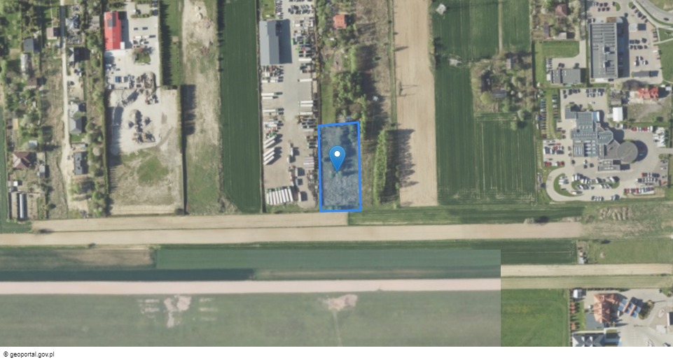 Udział 1/2 w nieruchomości . Działka posiada kształt foremny zbliżony do prostokąta o wymiarach 40x90m. Niezagospodarowana , porośnięta krzakami, drzewami i dziką roślinnością . Teren z lekkim spadkiem w kierunku południowym. Brak ogrodzenia oraz uzbrojenia. Brak planu zagospodarowania przestrzennego. Według studium uwarunkowań i kierunków zagospodarowania nieruchomość położona jet na terenach produkcyjno-usługowych. Brak dostępu do drogi publicznej