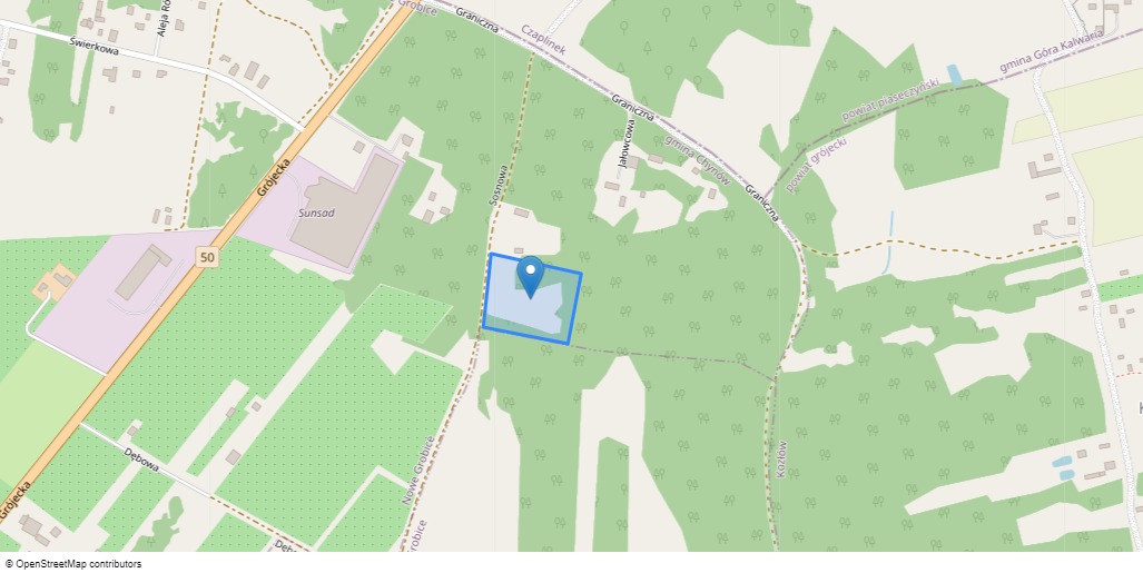 - nieruchomości położonej przy Nowe Grobice -, 05-650 Chynów, dla której Sąd Rejonowy w Grójcu V Wydział Ksiąg Wieczystych (adres: ul. Sportowa 14/05-600, Grójec, 05-600 Grójec) prowadzi księgę wieczystą o numerze RA1G/xxxxxxxx/8.