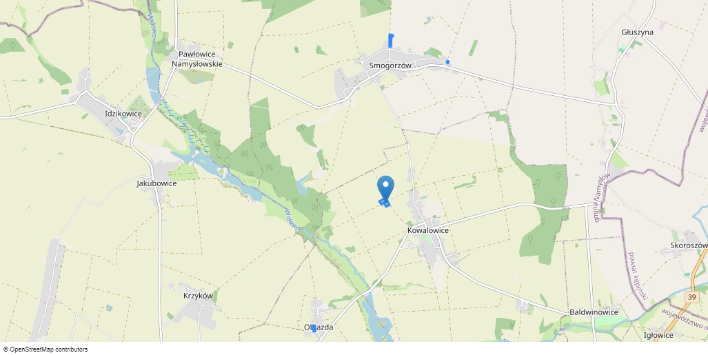 - nieruchomości, której właścicielem jest ************* z siedzibą w Objeździe położonej przy , Objazda, Smogorzów, Kowalowice, 46-100 Namysłów, dla której Sąd Rejonowy w Kluczborku IV Wydział Ksiąg Wieczystych (adres: ul. ul. M. Skłodowskiej-Curie 15, Kluczbork, 46-200 Kluczbork) prowadzi księgę wieczystą o numerze OP1U/xxxxxxxx/0.