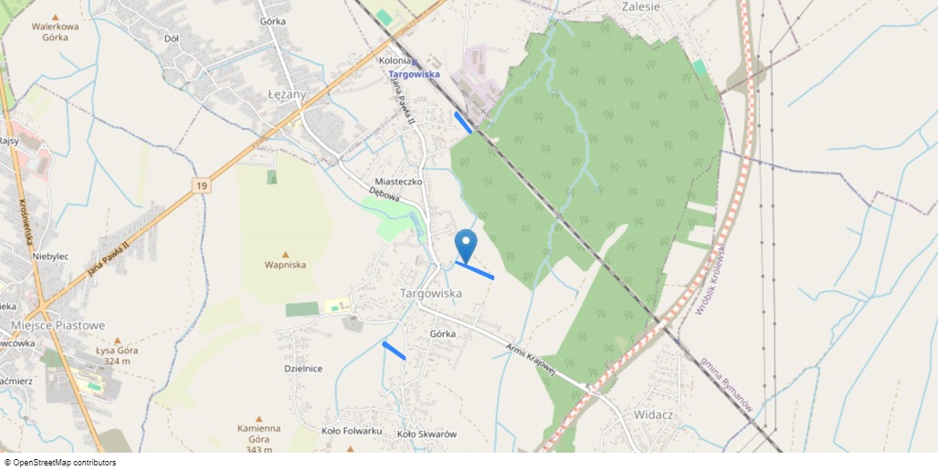 - nieruchomości, której właścicielem jest *********** położonej przy ,Targowiska, 38-430 Miejsce Piastowe, dla której Sąd Rejonowy w Krośnie VI Wydział Ksiąg Wieczystych (adres: ul. Sienkiewicza 12, Krosno, 38-400 Krosno) prowadzi księgę wieczystą o numerze KS1K/xxxxxxxx/7.