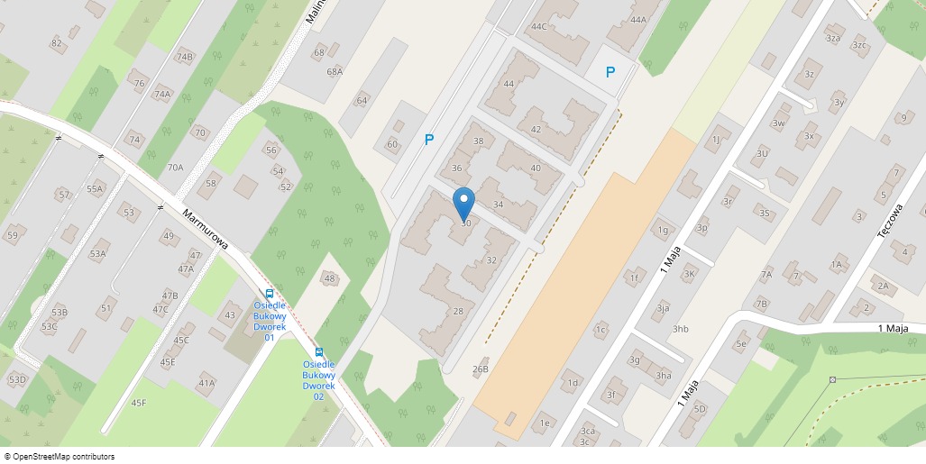 lokal niemieszkalny nr 56 o powierzchni użytkowej 179,70 m² położony na kondygnacji -1. Lokal niemieszkalny stanowi wielostanowiskowy garaż podziemny. Przedmiotowy lokal niemieszkalny znajduje się w budynku wielorodzinnym, usytuowanym przy ul. Marmurowej 30, w miejscowości Jabłonna, w promieniu ok. 2,0 km od centrum wsi. W najbliższym otoczeniu wycenianej nieruchomości znajduje się zabudowa mieszkaniowa wielorodzinna. W dalszej odległości znajdują się tereny leśne, zabudowa mieszkaniowa jednorodzinna z usługami towarzyszącymi. Budynek mieszkalny wielorodzinny składa się z 3-4 kondygnacji nadziemnych i jednej kondygnacji podziemnej. Budynek wchodzi w skład przedsięwzięcia deweloperskiego o nazwie Bukowy Dworek. W budynku zlokalizowane są lokale mieszkalne oraz lokal niemieszkalny stanowiący wielostanowiskowy garaż podziemny. Teren wokół budynku jest zagospodarowany, częściowo utwardzony kostką. Osiedle jest ogrodzone. Konstrukcja i standard wykończenia budynku: ściany konstrukcyjne żelbetowe i murowane, ściany zewnętrzne murowane, stropy żelbetowe, monolityczne, dach o konstrukcji drewnianej, pokryty blachą stalową, tynki zewnętrzne mineralne, na warstwie styropianu, tynki wewnętrzne gipsowe, okna PCV, drzwi zewnętrzne do klatek schodowych przeszklone, aluminiowe, wyposażone w samozamykacz, komunikacja wspólna gres, instalacje elektroenergetyczna, teletechniczna, wodno-kanalizacyjna, c.o. ,gazowa.