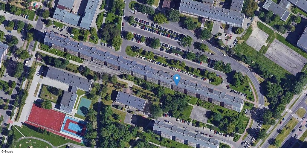 Lokal położony na piątym piętrze w budynku wielomieszkaniowym, dziesięciopiętrowym. Składa się z dwóch pokoi, przedpokoju, kuchni i łazienki z wc. Łączna powierzchnia użytkowa 39,20 m2. Lokal posiada balkon. Do lokalu przynależy piwnica o powierzchni 1,6 m2.