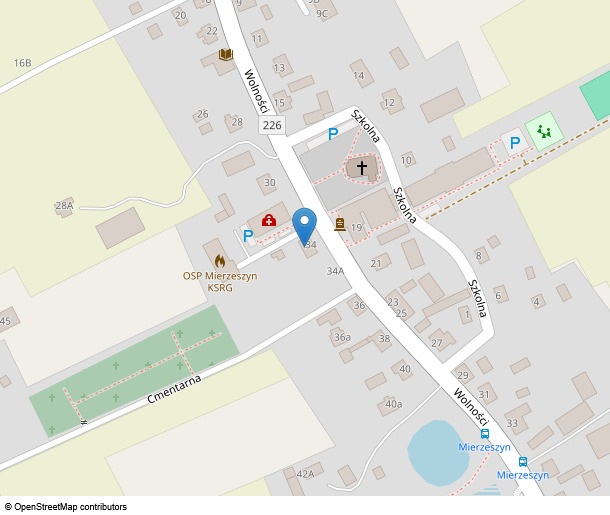 Przedmiotowa nieruchomość położona jest w Mierzeszynie w budynku mieszkalnym - budynek w zabudowie bliźniaczej - wzniesionym w pierwszej połowie XXw. przy ulicy Wolności 34 na gruncie działki nr 191/1 o powierzchni 606m2 . Nieruchomość stanowi lokal mieszkalny nr 2, o powierzchni użytkowej - 64,15m2 ,składa się z 2 pokoi, kuchni i przedsionka. Nieruchomość wchodzi w skład budynku mieszkalnego w zabudowie bliźniaczej, teren lekko opadający z dobrym dostępem do światła słonecznego. W sąsiedztwie zabudowa mieszkalna, usługowa, cmenatrz i kościół. Nieruchomość położona jest w rejonie ulic o nawierzchni utwardzonej, nieruchomość posiada bezpośredni dostęp do ul. Wolności stanowiącej drogę wojewódzką nr 226, przystanki komunikacji zbiorowej są oddalone blisko od nieruchomości, a usługi podstawowe zlokalizowane są w lokalnym centrum, w bezpośrednim sąsiedztwie nieruchomości znajdują się: Wiejski Ośrodek Zdrowia, biblioteka publiczna, paczkomat, sklep spożywczy, kościół, szkoła, plac zabaw i boisko szkolne. Budynek został wzniesiony w pierwszej połowie XXw., spełnia cechy zabudowy mieszkaniowej - bliźniaczej, przy czym sposób użytkowania jest mieszkalny, stanowi budynek parterowy, nieruchomość znajduje się w granicy strefy ochrony koserwatorskiej. Fundamenty - murowane z cegły, ściany - murowane, ścianki działowe - murowane, strop - drewniany, pokrycie dachu - dach dwuspadowy, kryty w części blachodachówką, w części eternitem, stolarka - okna PCV, drzwi wejściowe - drewniane, tynki i okładziny zewnętrzne - cegła i tynk, obróbki blacharskie - opierzenie blacharskie z blachy stalowej ocynkowanej. Budynek posiada dostęp do następujacych mediów: kanalizacji sanitarnej i deszczowej, wodociągowej, elektroenergetycznej, telekomunikacyjnej oraz elektrycznej. Stopień zużycia technicznego i funkcjonalnego mieszkania wynika z wieku budynku i zastosowanej technologii wykonawstwa i jest typowy dla starszego budynku o niskim stopniu koserwacji i remontów. UWAGA: w wyznaczonym terminie właściciel nie udostępnił obiektu w celu dokonania szczegółowej lustracji. W związku z tym ustalono stan techniczny obiektu na podstawie oględzin zewnętrznych, dostępnych dokumentów, zdjęć, przyjęto typowe parametry. Przy ostatecznym przyporządkowaniu określonej wartości przedmiotowym cechom przyjęto typowy standard dla tego rodzaju obiektów.