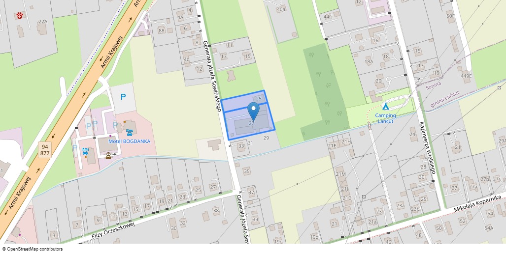 nieruchomości położonej w miejscowości Łańcut, przy ul. Sowińskiego oznaczonej jako działki nr ewid. 5045/23 oraz nr ewid. 5045/13. Działki położone sa obok siebie - tworzą funkcjonalnie zagospodarowany kompleks o łącznej powierzchni 0,4555ha, zabudowany zespołem budynków niemieszkalnych (produkcyjno-warsztatowo-magazynowych z zapleczem socjalno-biurowym). Nieruchomość stanowi własność dłużnika ***********. Dla nieruchomości księgę wieczystą nr RZ1A/xxxxxxxx/8 prowadzi Sąd Rejonowy w Łańcucie. Nieruchomość oszacowana jest na kwotę: 1 437 000,00 zł.