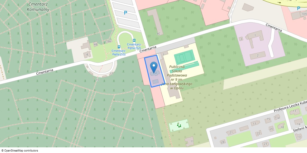 - nieruchomości, której właścicielem jest *********** położonej przy Cmentarna 7A, 45-834 Opole, dla której Sąd Rejonowy w Opolu Wydział Ksiąg Wieczystych (adres: ul. Ozimska 60 a, Opole, 45-368 Opole) prowadzi księgę wieczystą o numerze OP1O/xxxxxxxx/9.