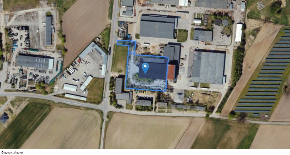 Przedmiotem licytacji jest nieruchomość zabudowana, składająca się z działek nr 128/34 i 128/40 o łącznej powierzchni 0,8467 ha. Na nieruchomości znajdują się: budynek użytkowy - hala (nr ewidencyjny 260) oraz budynek użytkowy - biurowo-socjalny (nr ewidencyjny 261). Nieruchomość ogrodzona w części płotem z siatki stalowej w ramach. Teren płaski, w znacznej części (drogi wewnętrzne, place manewrowe) utwardzony nawierzchnią betonową oraz trylinką. Nieruchomość posiada dostęp do drogi publicznej ulicy Przemysłowej – drogi gminnej nr 020639C..