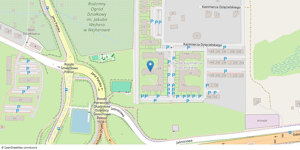 https://drive.google.com/file/d/1MdAVmDKtzvj1yREwdC_PZ4UsLZSm14Gn/view?usp=sharing . . . . . Lokal znajduje się w budynku mieszkalnym wielorodzinnym z lokalem użytkowym w poziomie parteru wybudowanym w roku 2007 przez dewelopera – firmę Orlex. Osiedle sąsiaduje z kilkoma blokami, zabudową jednorodzinną, terenami niezabudowanymi. Dojazd do budynku możliwy od strony ulicy Gryfa Pomorskiego, ulicą Dzięcielskiego- drogą wewnętrzną - ustanowiona służebność przejazdu i przechodu – przez dz. 190/32: Przed budynkiem znajdują się miejsca parkingowe lecz ogólnodostępnych miejsc jest ograniczona ilość. Z uwagi na położenie osiedla, dużą odległość od głównych ciągów komunikacyjnych i handlowych - lokalizacja dla lokalu użytkowego jest jedyne zadawalająca. Przedmiotowy lokal niemieszkalny – lokal użytkowy (aktualnie sklep - delikatesy) o powierzchni użytkowej 173,80 m2 znajduje się na parterze i składa się z sali sprzedaży, pomieszczeń socjalnych, sanitarnego, magazynowych. Jest to lokal usytuowany na jednym poziomie z witrynami od strony wewnętrznego chodnika – ekspozycja dobra. Posadzki w pomieszczeniach wyłożone płytkami gresu, ściany malowane, a w części pomieszczeń obłożone płytkami glazury. Witryny pcv. Lokal wyposażony jest w instalacje: elektryczną, wodno-kanalizacyjną, grzewczą z sieci, wentylację, klimatyzację, alarmową, monitoring, instalację okablowania do kas (informatyczną). Mając powyższe na uwadze przyjęto stan techniczny i standard wykończenia i wyposażenia lokalu jako dobry. Przeznaczenie w planie zagospodarowania przestrzennego: Nieruchomość położona na terenie przeznaczonym pod zabudowę mieszkaniową wielorodzinną (Uchwała Nr VIIk/XXV/280/2016 z dnia 13.09.2016 r. Rady Miasta Wejherowa w sprawie uchwalenia zmiany miejscowego planu zagospodarowania przestrzennego we fragmencie miasta Wejherowa dla terenu oznaczonego w obowiązującym planie symbolem T5, XP 3.1 oraz działki 9/1, 24/1, obr. 12, działki 7/4, 4/29, 4/22, 4/20, 4/15, 4/17, 6/5, 7/2, obr. 20 oraz fragmenty działek 26/22, obr. 12, 4/34, 4/46, 4/31, 4/1, 4/47, 4/40, 4/19, 4/16, 6/4, obr. 20).